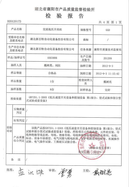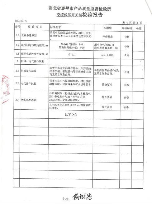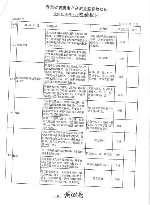 交流低壓開關(guān)柜檢驗(yàn)報(bào)告