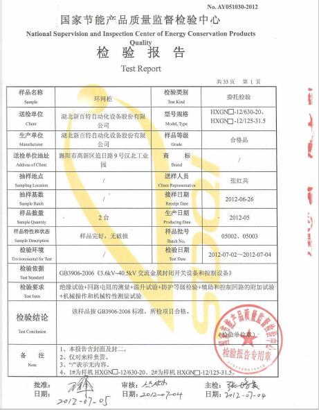 環(huán)網(wǎng)柜檢驗(yàn)報(bào)告