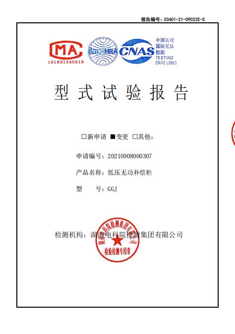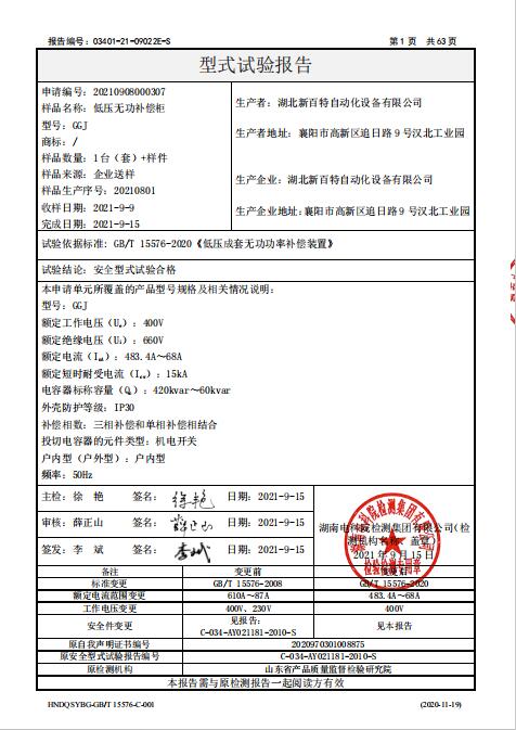 低壓無(wú)功補(bǔ)償柜型式試驗(yàn)報(bào)告